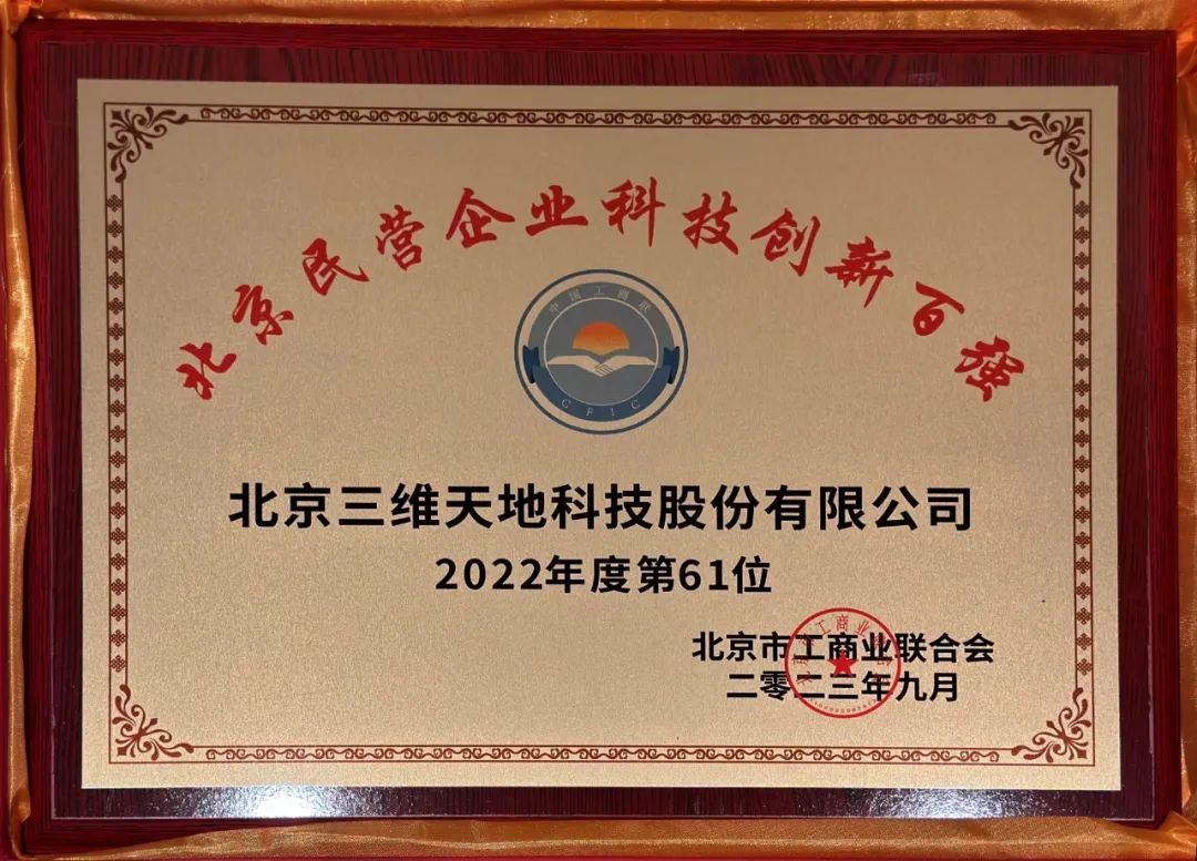 提振民營(yíng)經(jīng)濟(jì) 推動(dòng)高質(zhì)量發(fā)展 | 三維天地入選2023北京民營(yíng)企業(yè)科技創(chuàng)新100強(qiáng)
