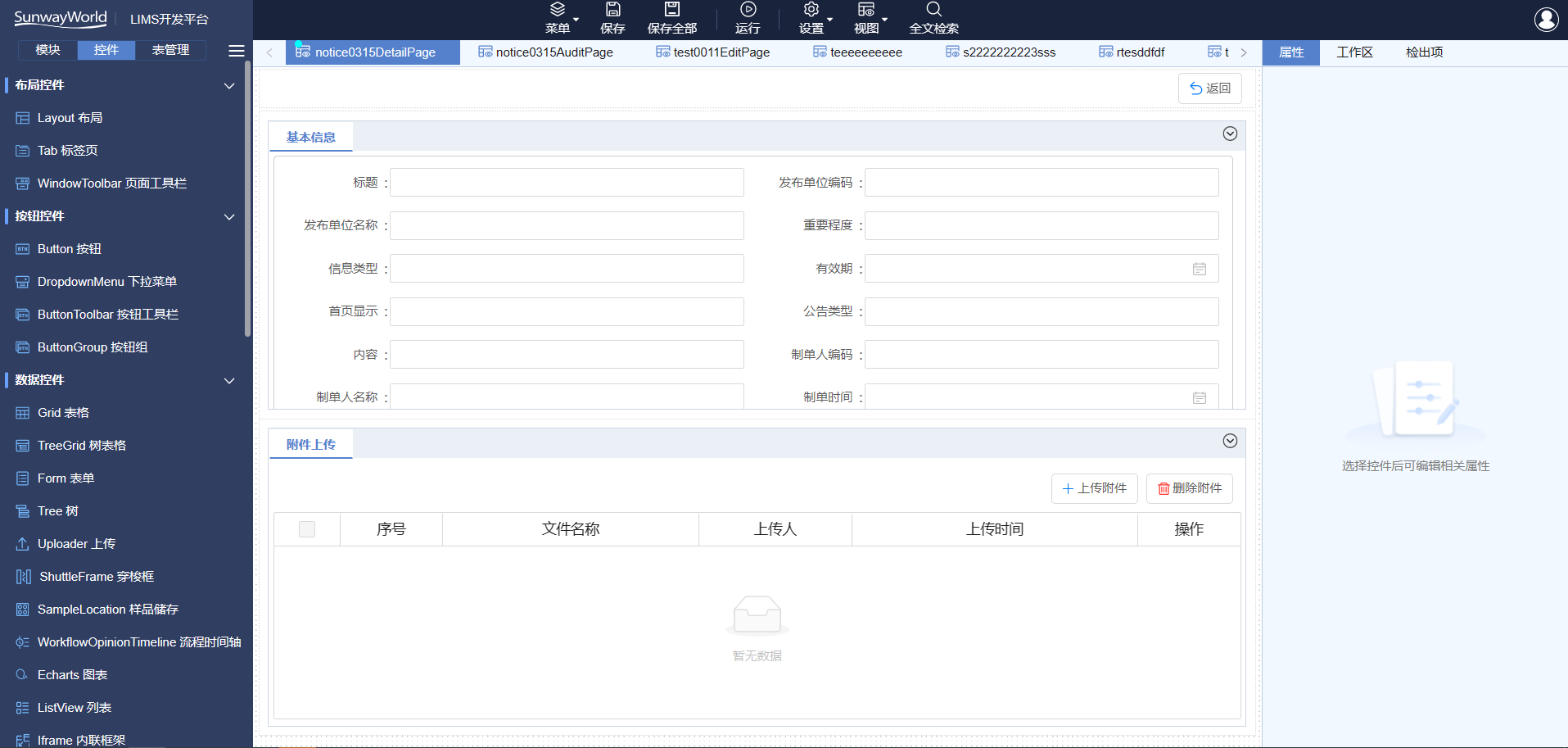 平臺(tái)內(nèi)置LIMS產(chǎn)品的所有界面控件,分為布局控件、按鈕控件、數(shù)據(jù)控件、輸入控件、導(dǎo)航控件等,通過(guò)拖拽方式即可繪制出界面,方便項(xiàng)目實(shí)施,客戶(hù)后續(xù)可自行維護(hù),方便快捷。