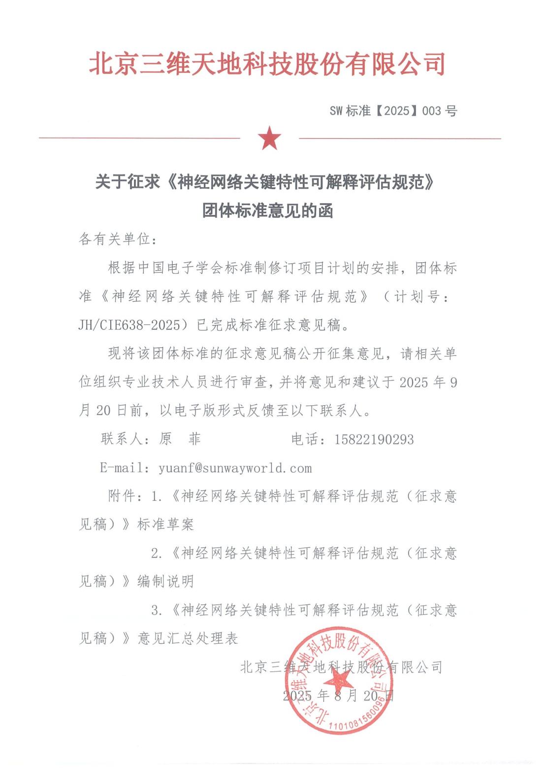 關(guān)于征求《神經(jīng)網(wǎng)絡(luò)關(guān)鍵特性可解釋評估規(guī)范》團體標準意見的函