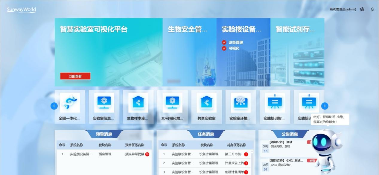- 孿生實(shí)驗(yàn)室交互管理:對(duì)實(shí)驗(yàn)室物理環(huán)境進(jìn)行虛擬仿真,突破信息孤島,將分散的各獨(dú)立管理系統(tǒng)(監(jiān)控軟件、門(mén)禁控制臺(tái)、設(shè)備管理平臺(tái)等)無(wú)縫集成于統(tǒng)一的3D虛擬環(huán)境。管理者可通過(guò)數(shù)字分身進(jìn)行第一視角漫游,在虛擬實(shí)驗(yàn)室中自由行走、觀察細(xì)節(jié)、執(zhí)行交互指令,大幅提升管理效率與操作體驗(yàn)。