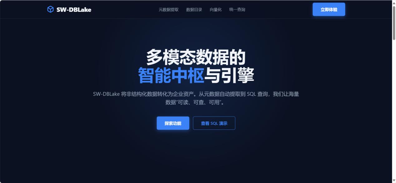 SW-DBLake 是多模態(tài)數(shù)據(jù)湖產(chǎn)品,致力于構建統(tǒng)一、彈性、智能的企業(yè)級數(shù)據(jù)匯聚與治理平臺,定位為AI時代面向多模態(tài)數(shù)據(jù)的統(tǒng)一治理底座,支撐全量數(shù)據(jù)分析與價值挖掘。